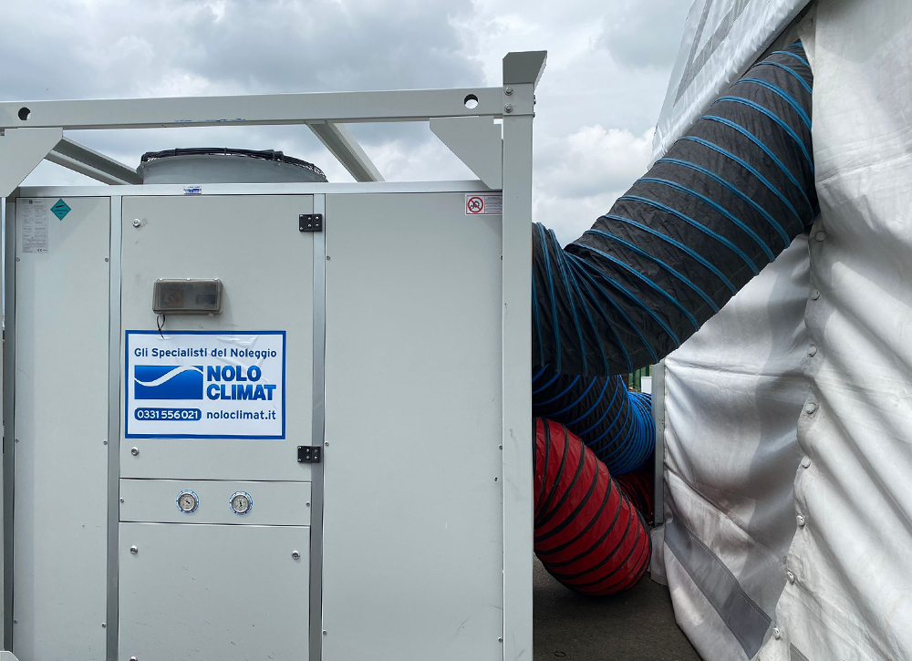In questo caso, siamo intervenuti proponendo il noleggio di condizionatori HPAC: un 30kW, un 45kW e tre 90kW. Abbiamo installato le macchine il lunedì, proceduto con i test tra martedì e giovedì, e assistito sulle 24 ore il sabato, giorno del concerto.