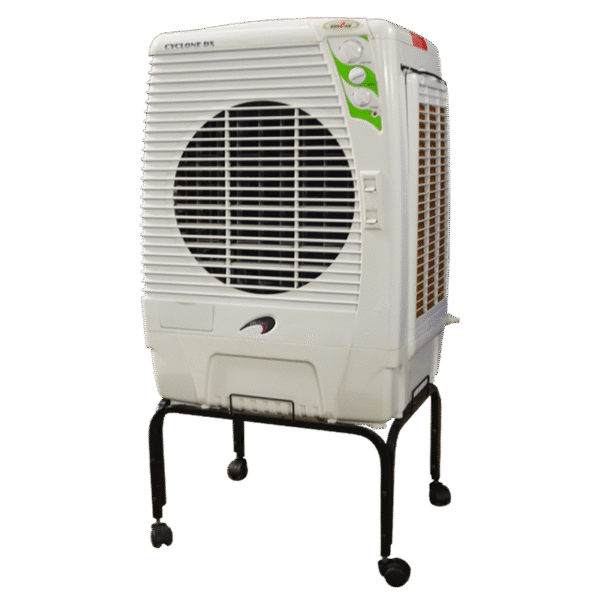 Il Cyclone DX è un’ottima alternativa ai condizionatori d’aria convenzionali, progettato per generare aria fresca attraverso il principio dell’evaporazione. Questo modello in particolare offre una portata d’aria massima di 2550 m³/h. Il Cyclone DX è facile da utilizzare, e grazie alla ventola a tre velocità consente di regolare la distribuzione dell’aria. I raffrescatori evaporativi sono utilizzati per climatizzare ambienti nei quali è impossibile (o poco pratico) installare i condizionatori con tubo di scarico e split a causa delle dimensioni dei locali o dell’impossibilità di evacuare l’aria calda all’esterno. Sono spesso la soluzione ideale in negozi, sale riunioni, uffici e applicazioni simili.